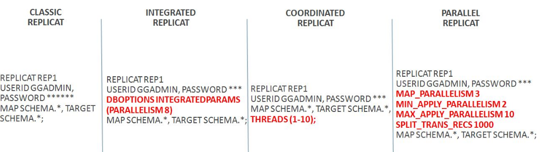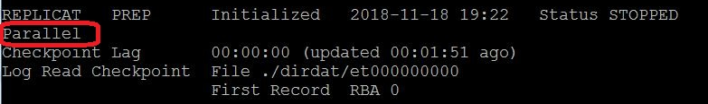 add replicat rep1, parallel, exttrail ./dirdat/et