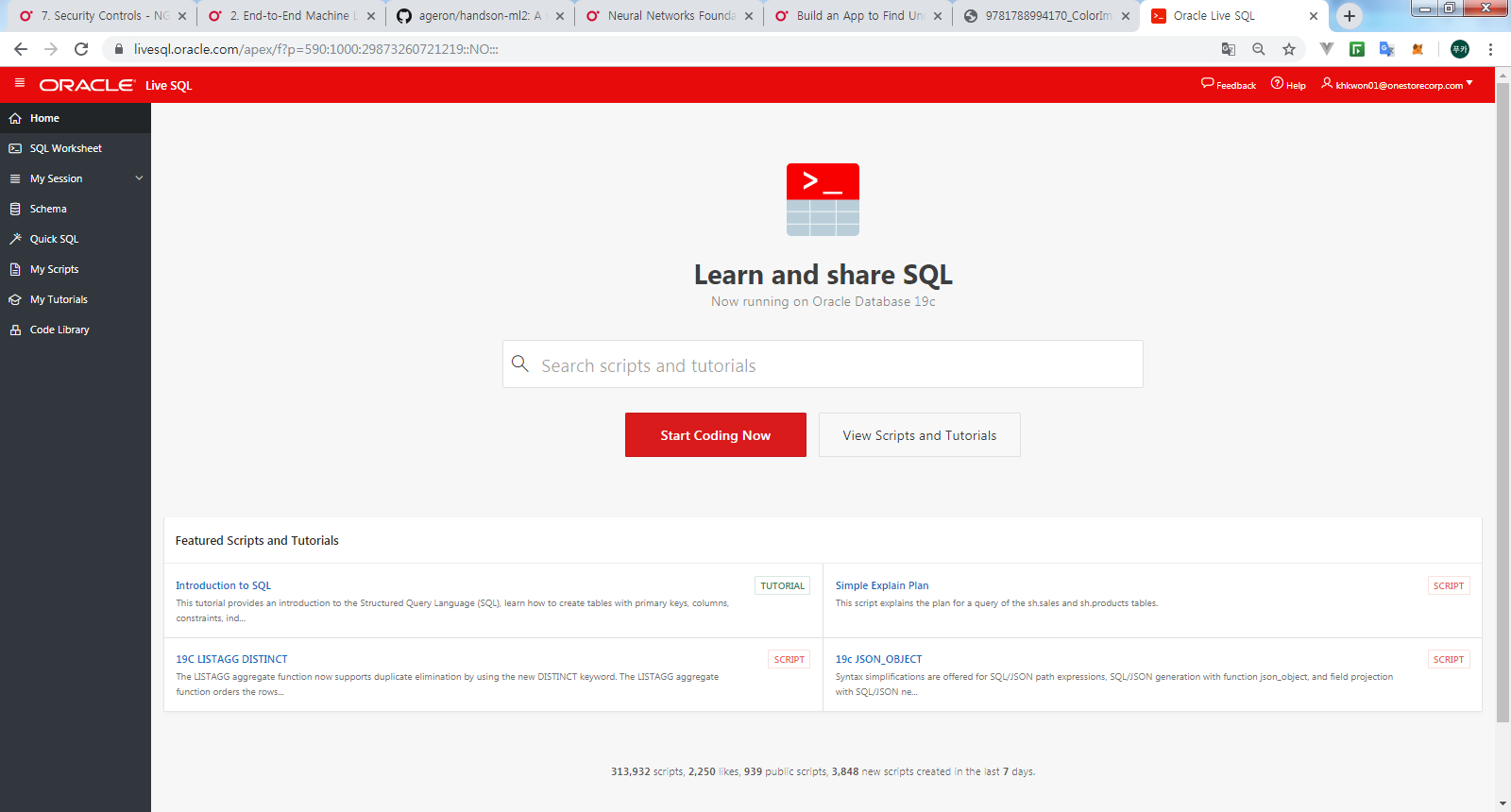 https://livesql.oracle.com 접속하여 oracle 계정으로 로그인