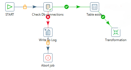 - db connection를 체크후 이상 없으면 table 존재를 체크하고 transformation 작업 수행