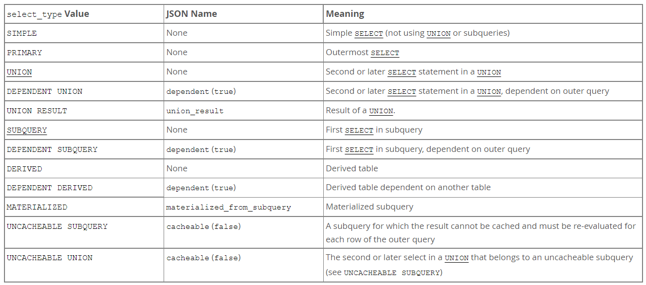2. explain output 중 select type