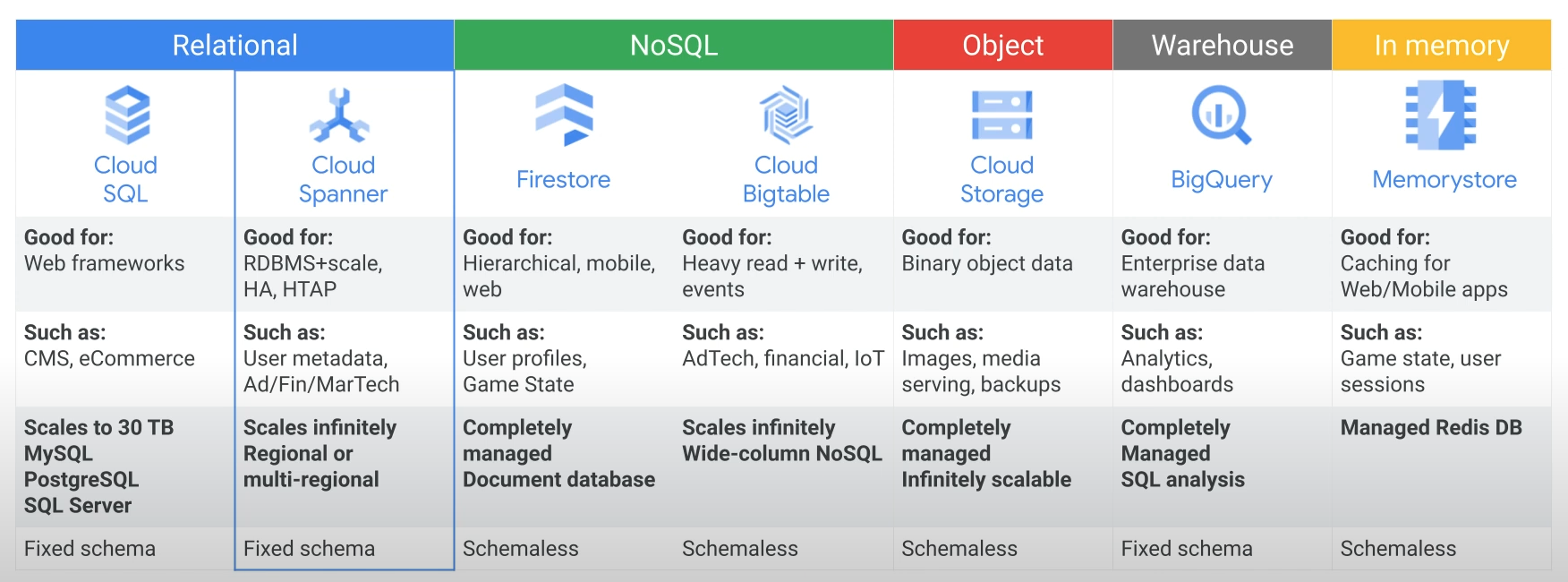 google cloud storage and database